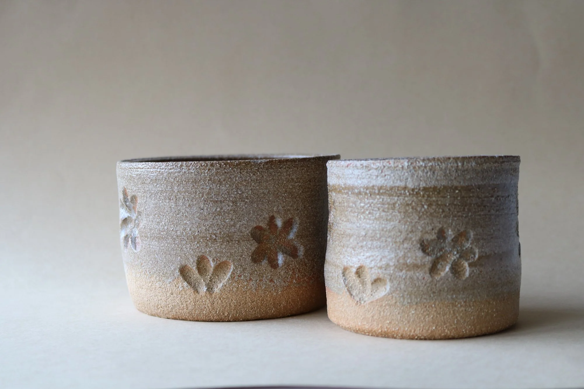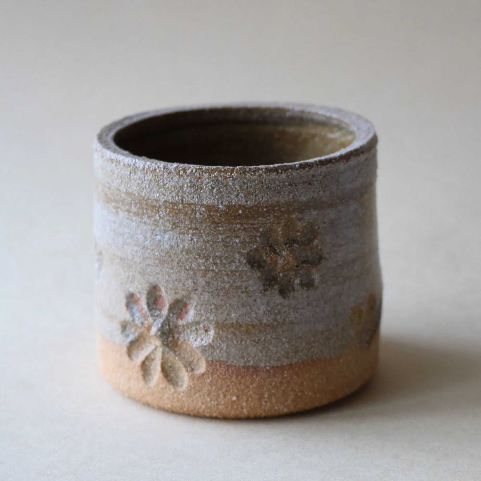 Handmade ceramic stoneware planter with daisy flower detail by Hey Lenny.