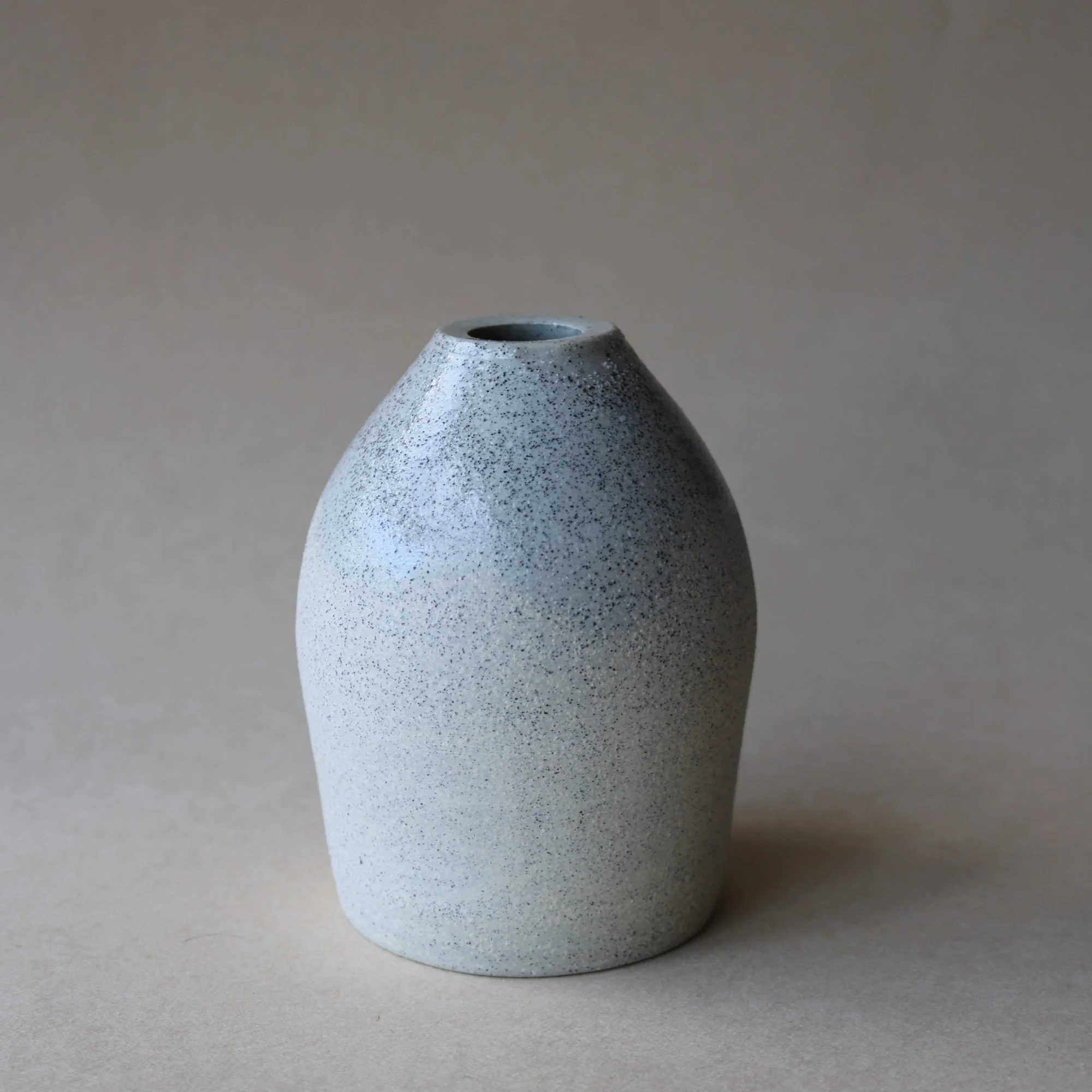 Handcrafted stoneware ceramic vase in Shino glaze made by Hey Lenny with a flower.